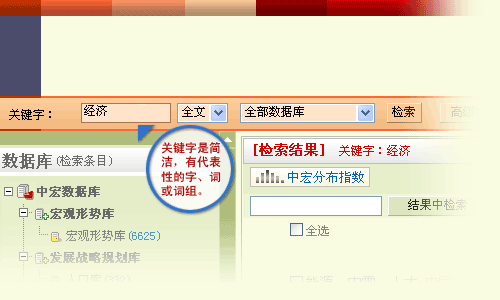 1、比如,在检索栏中键入“通货紧缩”,八九十年代以来,只要文中有“通货紧缩”四个字的信息就会全部显现:有动态性的、有研究成果的、有统计数据的、有产业、区域、世界的、有金融、投资的、有外资外贸的等方面。一瞬间在如此的时间跨度、领域分布中掌握信息和占有资料,传统手段是根本无法企及的。
